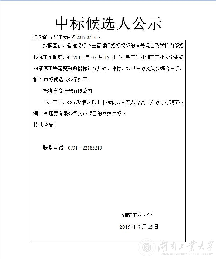 湖南工业大学整体厂房除尘空调系统维修保养招标公告