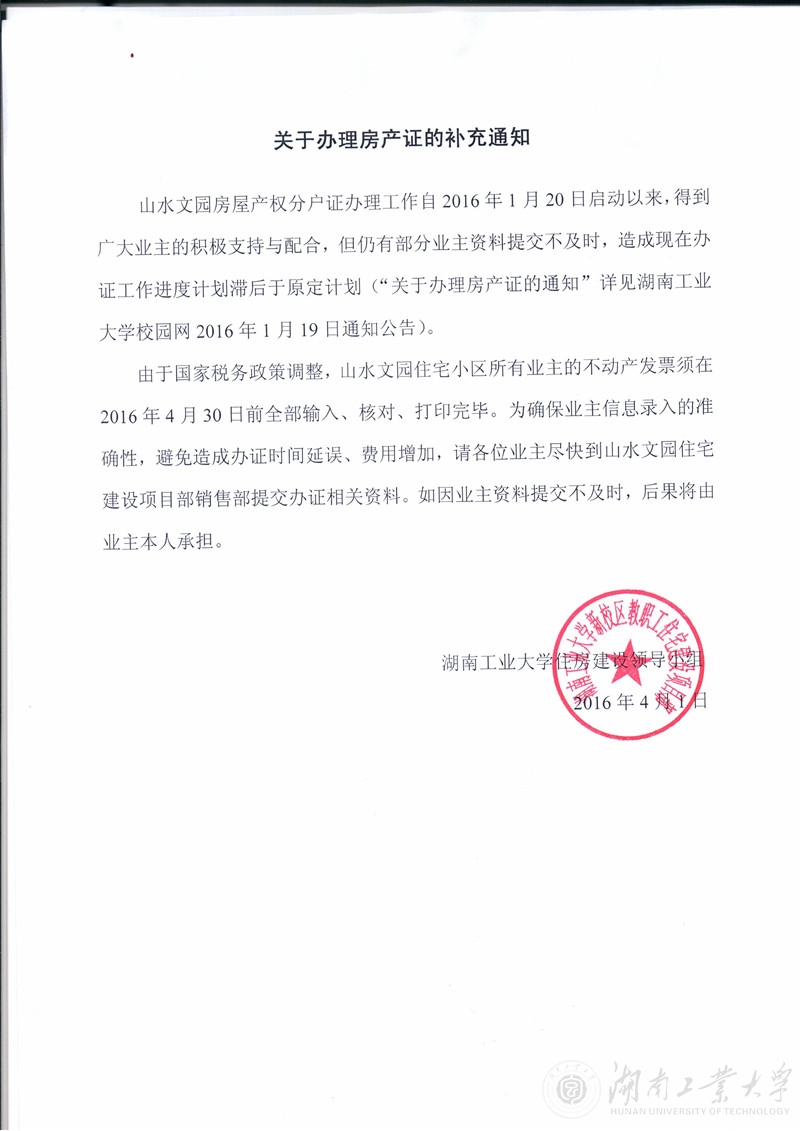 关于办理房产证的补充通知