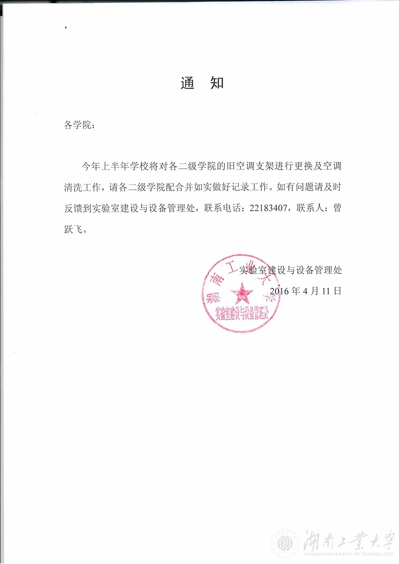 关于对各二级学院旧空调支架更换及空调清洗工作开展的通知