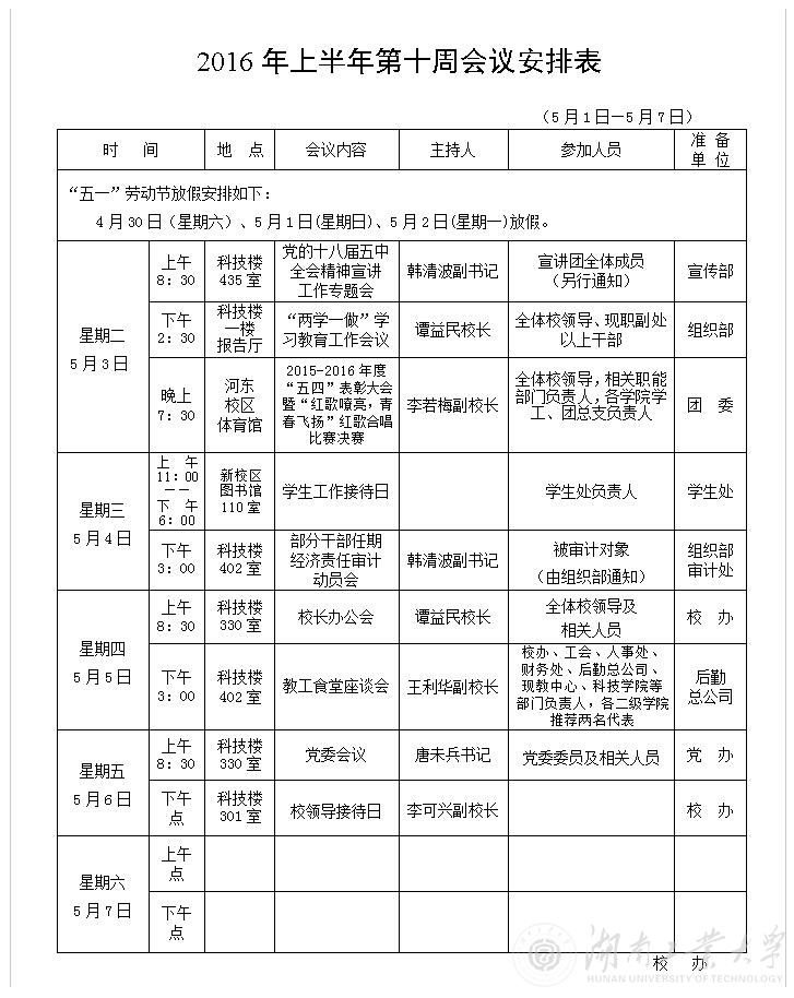 2016年上半年第十周会议安排表