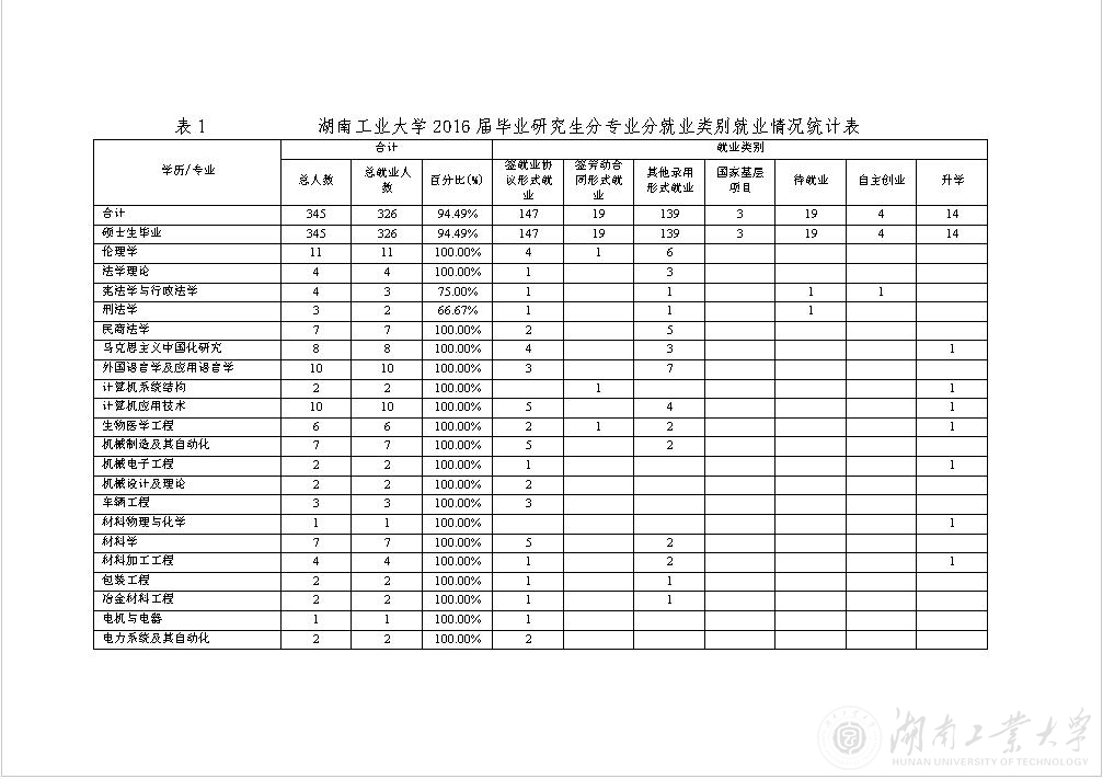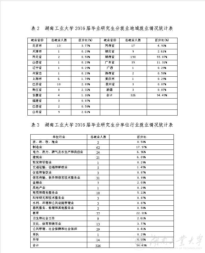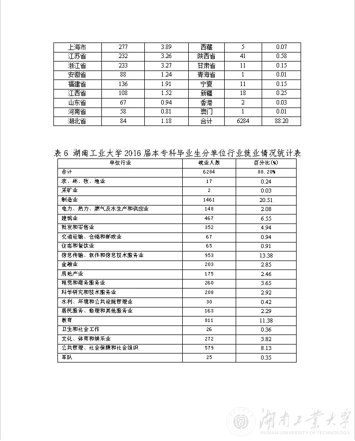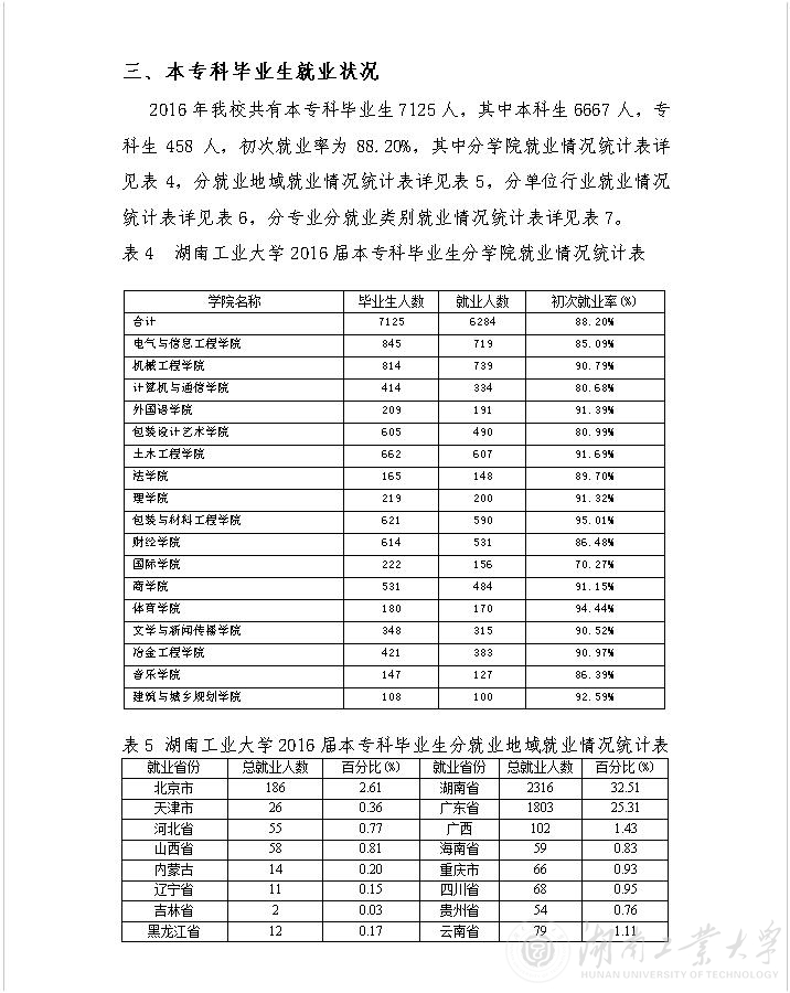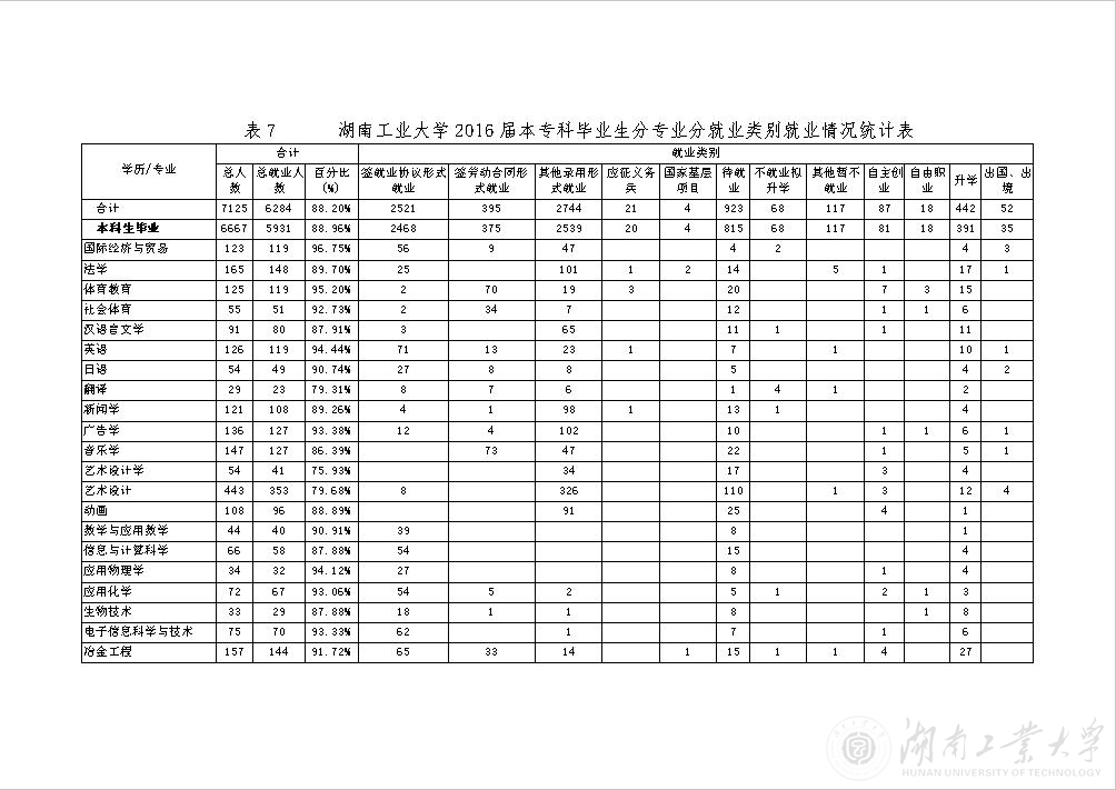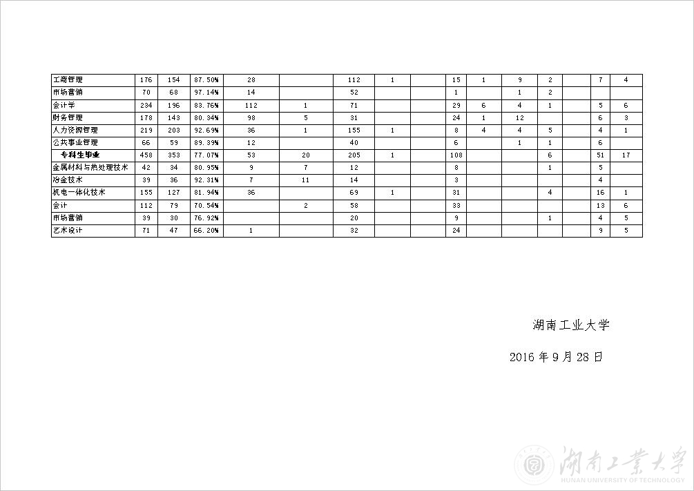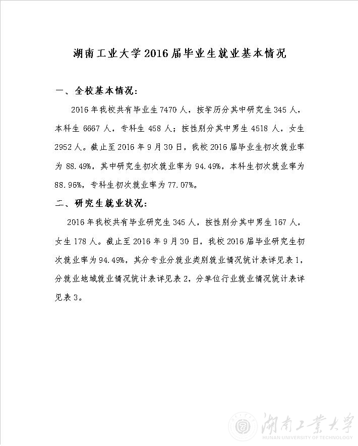[发布]湖南工业大学2016届毕业生就业基本情况