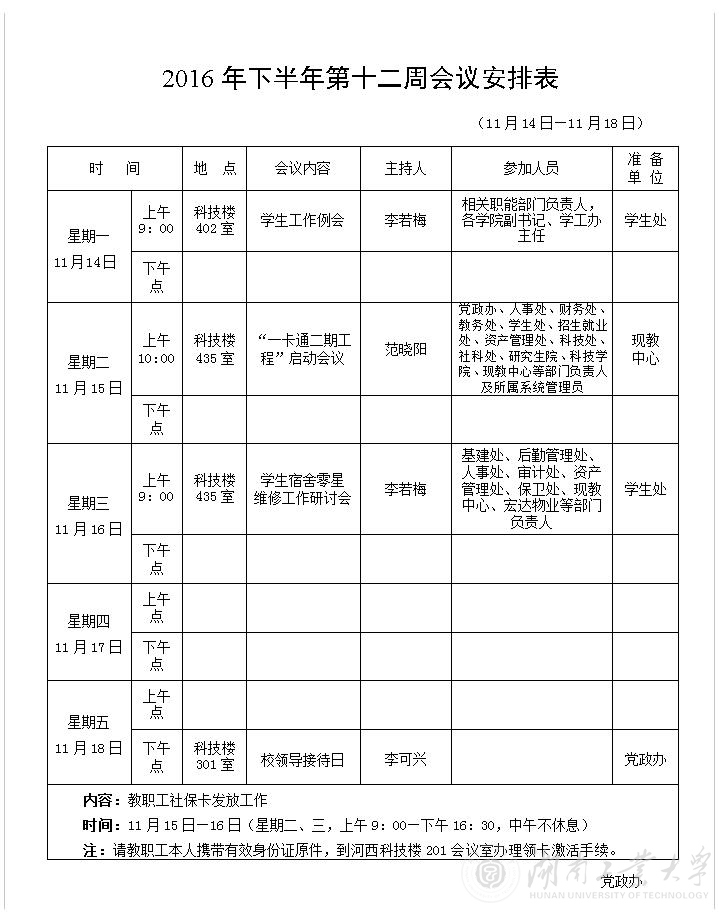 2016年下半年第十二周会议安排表