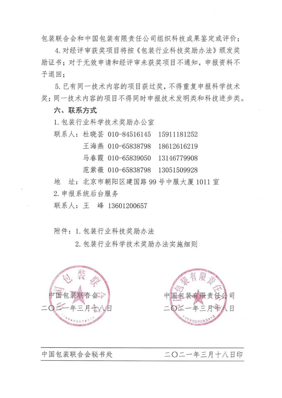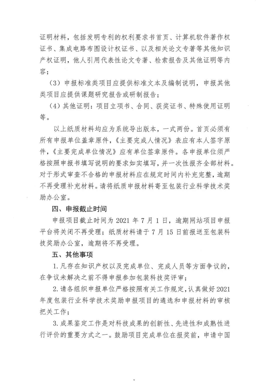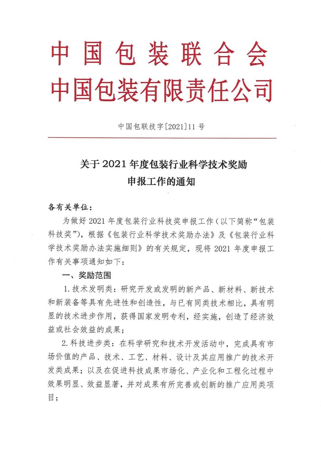 关于2021年度包装行业科学技术奖励申报工作的通知