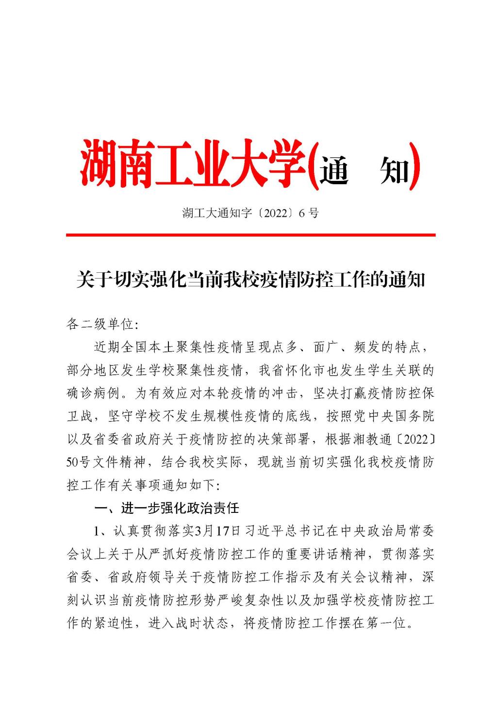 关于切实强化当前我校疫情防控工作的通知