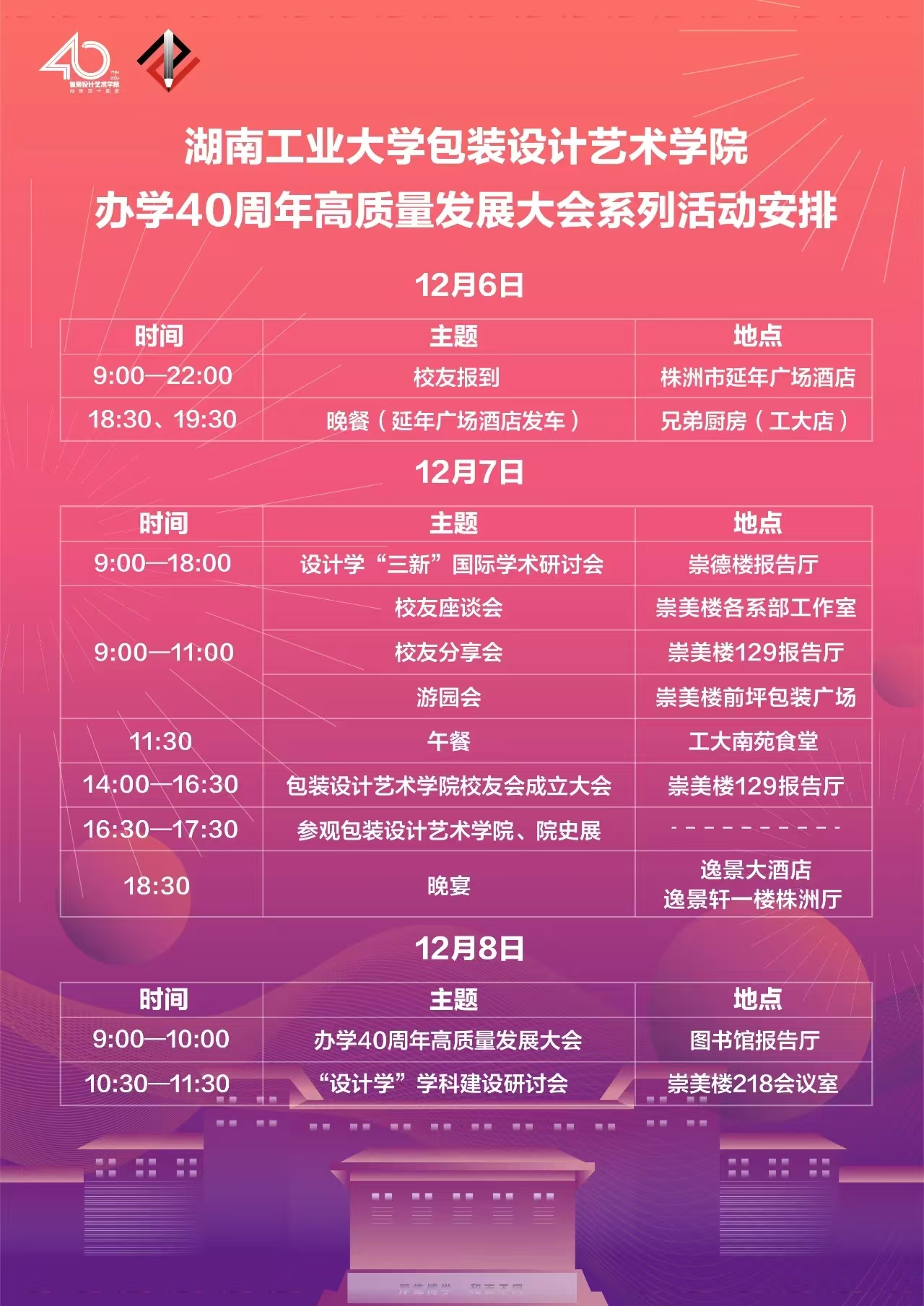 湖南工业大学包装设计艺术学院办学40周年高质量发展大会系列活动安排