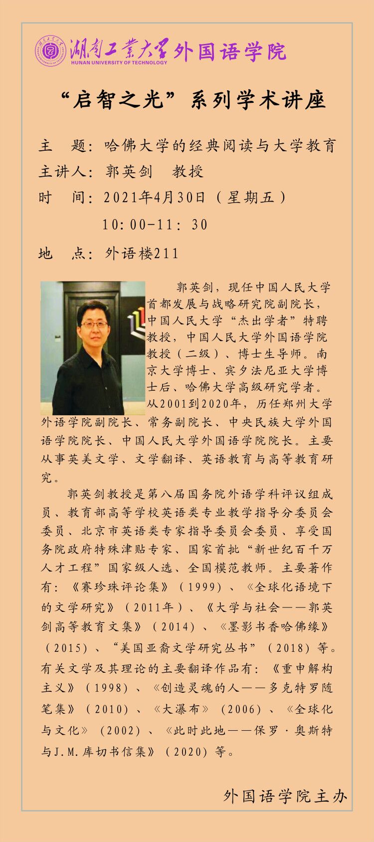 下一篇:外国语学院“启智之光”系列学术讲座---《传统与变革:英国政治现代化的特性》