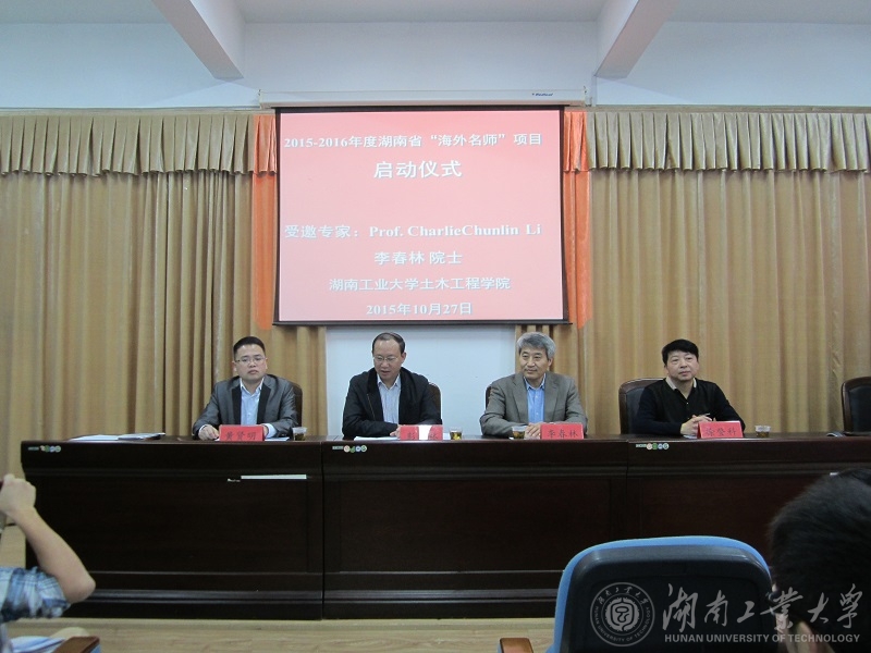 10月27日上午,我校土木工程学科2015-2016年度湖南省“海外名师”项目启动仪式在土木工程学院210报告厅举行。国际岩土力学学会欧洲区副主席、挪威工程技术科学院院士李春林,校党委副书记彭希林出席,国际交流处负责人、土木工程学院负责人,土木工程学院教师、研究生和本科生代表参加了仪式。
