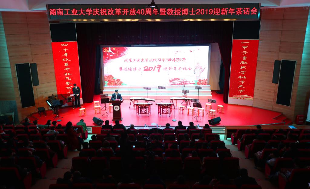 12月28日,我校庆祝改革开放40周年暨教授博士迎新年茶话会在崇乐楼报告厅举行,全体在家校领导与我校教授、博士及相关部门负责人欢聚一堂,共话一年丰收喜悦,同迎2019年的到来,党委副书记韩清波主持茶话会。