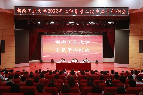 6月14日下午,我校召开2022年上学期第二次中层干部例会。党委书记刘望主持会议并讲话,校长蒋昌波作工作部署,全体校领导、处级干部、党政管理部门及教辅单位综合科科长(办公室主任)、各教学院综合办主任、教务办主任、学生管理与就业办主任、专职组织员参加会议。