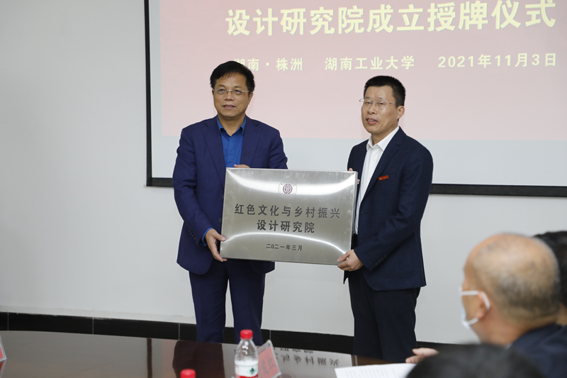 副校长殷晓元宣读了《关于成立湖南工业大学红色文化与乡村振兴设计研究院的决定》。根据决定,为更好地把红色传统发扬好,把红色基因传承好,助力乡村振兴,经学校社科处备案,同意在包装设计艺术学院成立湖南工业大学红色文化与乡村振兴设计研究院。