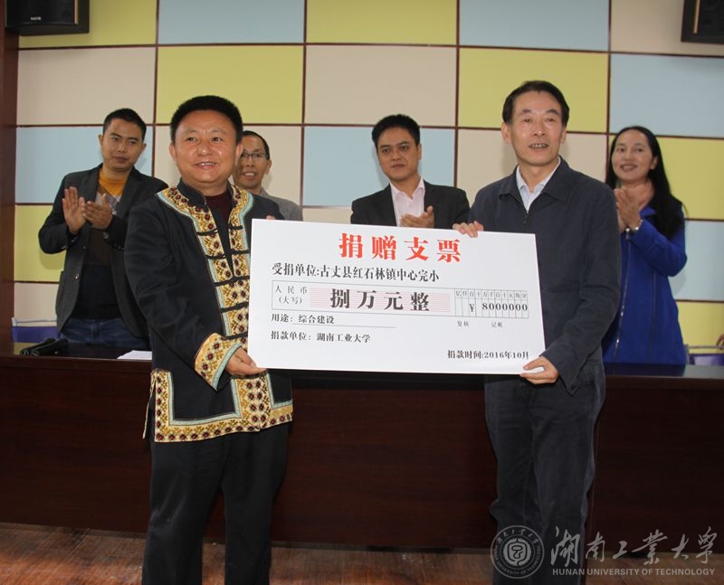 28日上午,我校第三次对口帮扶红石林完小捐赠仪式在该校新近落成的“湖南工业大学综合楼”多媒体功能厅举行。此次为该校捐赠8万元专项建设资金,是我校应红石林完小在农村寄宿制学校达标建设中遭遇建设资金困难的请求而作出的帮扶决定。