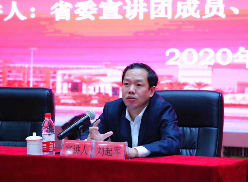 刘起军以习近平总书记四次到湖南考察调研为引,从“为什么学”“学什么”“怎么学”三个方面,全面系统宣讲了讲话精神的丰富内涵、精神实质、核心要义、实践路径。他还结合高校工作实际,就学校如何全面贯彻落实讲话精神提了要求。