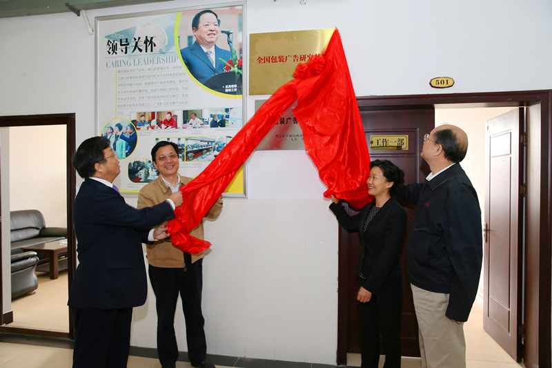 在文学与新闻传播学院,刘敏、阳芳华、唐未兵、谭益民为全国包装广告研究基地揭牌,这标志着全国唯一一个国家级广告研究基地正式落户我校。