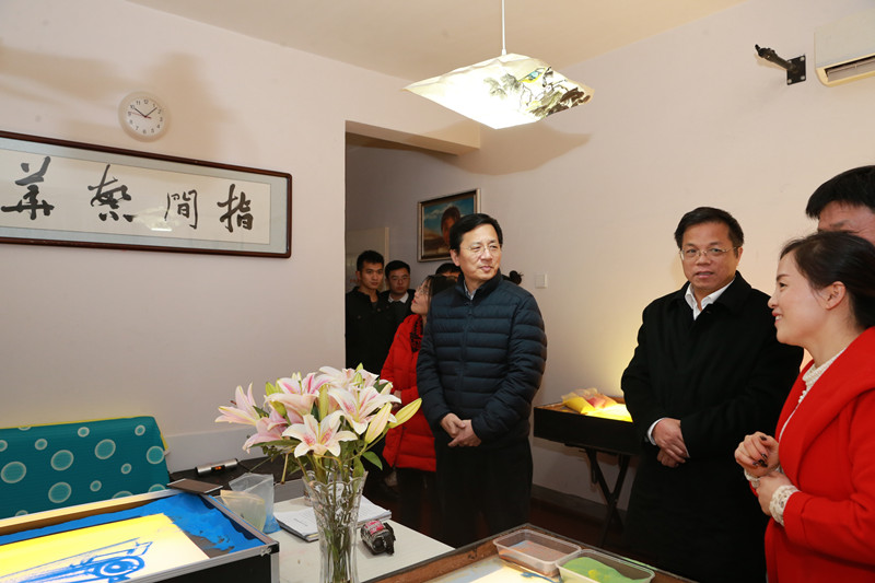 唐未兵、谭益民在李丽沙画艺术工作室调研
