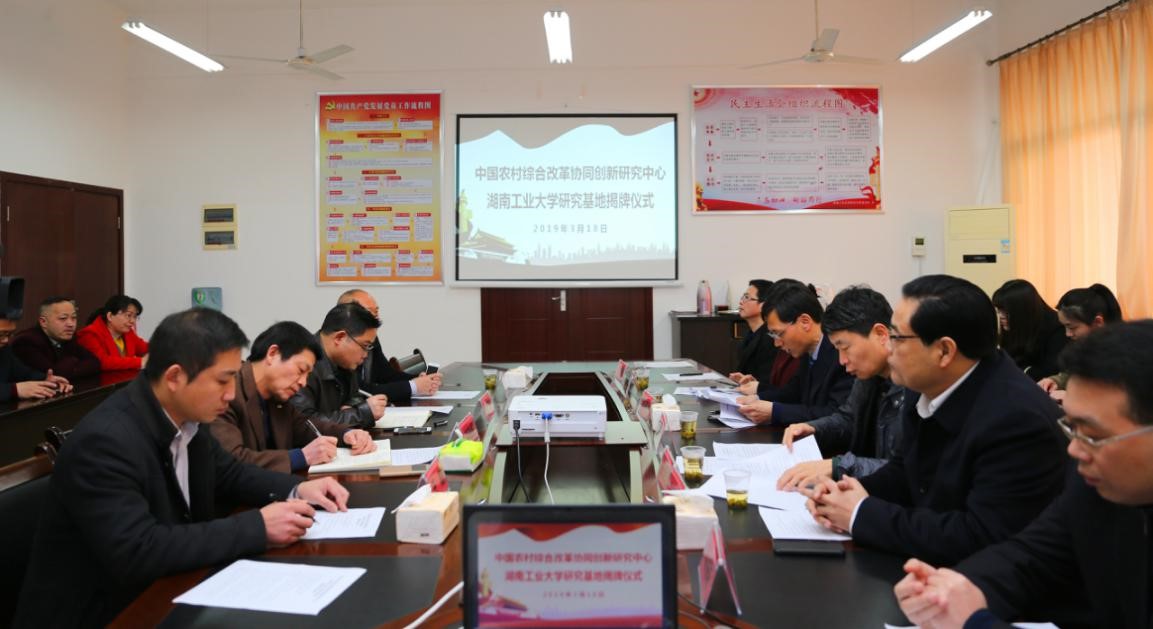 3月18日,中国农村综合改革协同创新研究中心湖南工业大学研究基地揭牌仪式在崇信楼举行。华中师范大学政治与国际关系学院教授、中国农村综合改革协同创新研究中心主任吴理财,副校长张昌凡,纪委书记张亚东,党委委员、党委宣传部部长易棉阳,株洲市农业农村工作局局长陈艳娟、株洲市全面深化改革领导小组办公室副主任付书地出席,社科处相关负责人、经济与贸易学院领导班子成员参加,张亚东主持仪式。
