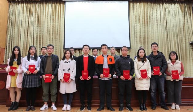 副校长李若梅宣读获奖名单,与会领导为获奖人员颁奖。
