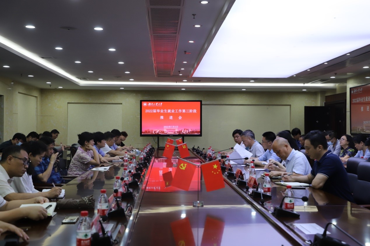 7月5日,我校在崇德楼401召开2022届毕业生就业工作第三阶段推进会。校长蒋昌波出席会议,招生与就业指导处、科学技术处、社会科学处等相关部门负责人以及各学院院长、党委副书记参加会议。会议由副校长李若梅主持。