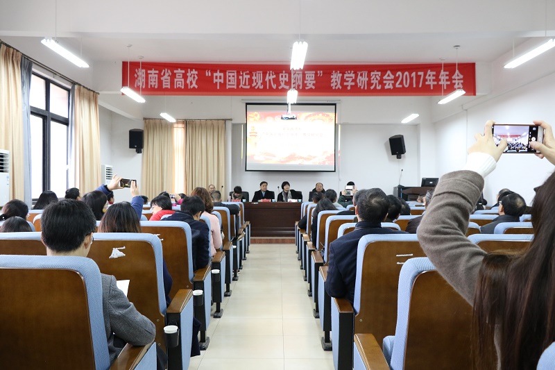 在全国上下热学热议党的十九大精神,学习宣传贯彻习近平新时代中国特色社会主义思想,坚定文化自信,推动社会主义文化繁荣兴盛的重要时期,湖南省高校“中国近现代史纲要”教学研究会2017年年会于近日在我校马克思主义学院召开。省委教育工委宣传部副部长李林芳、省高校“思政课”教学研究会秘书长冷舜安、我校党委委员吕志明出席年会。全省本科高校60余名专家学者与会。