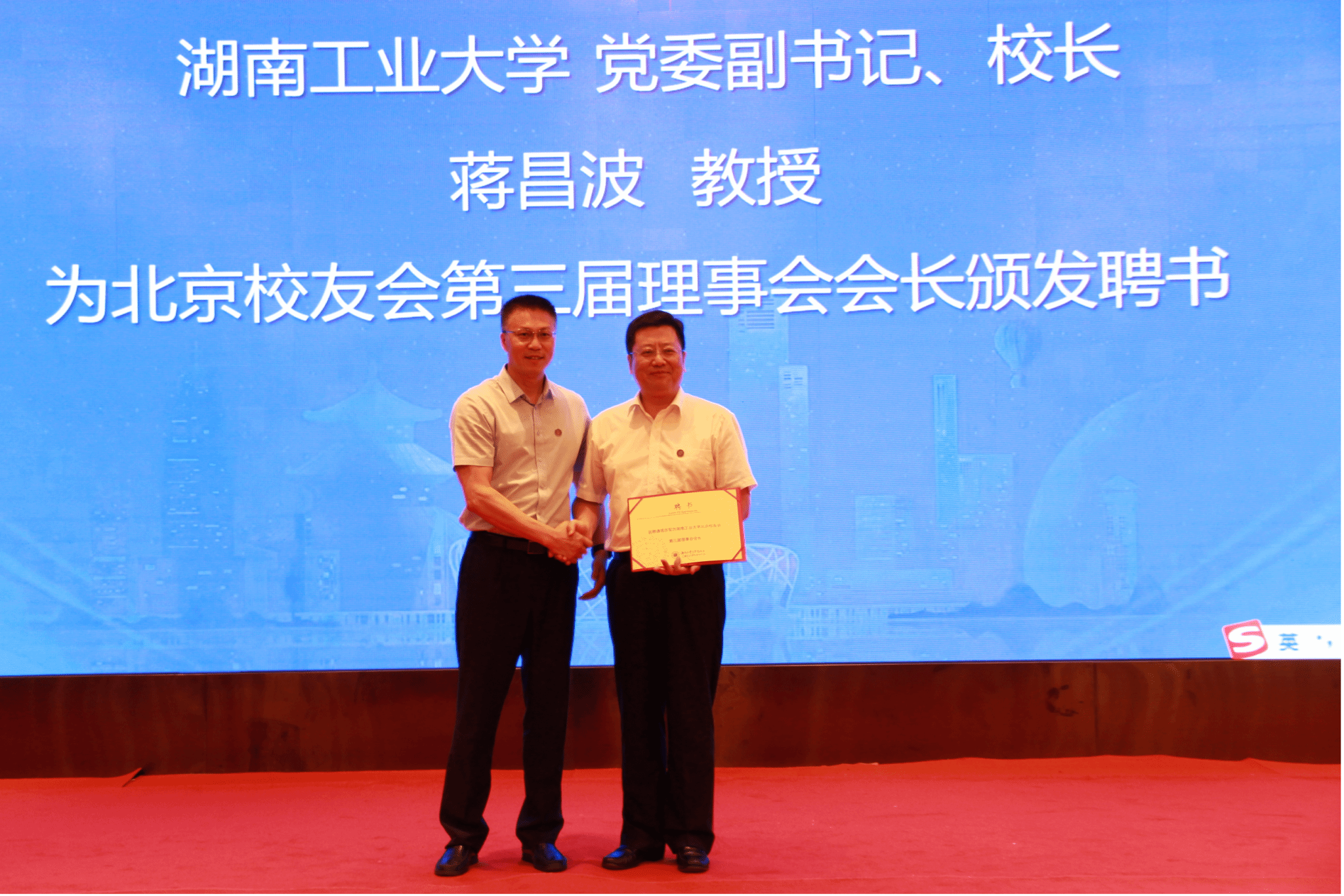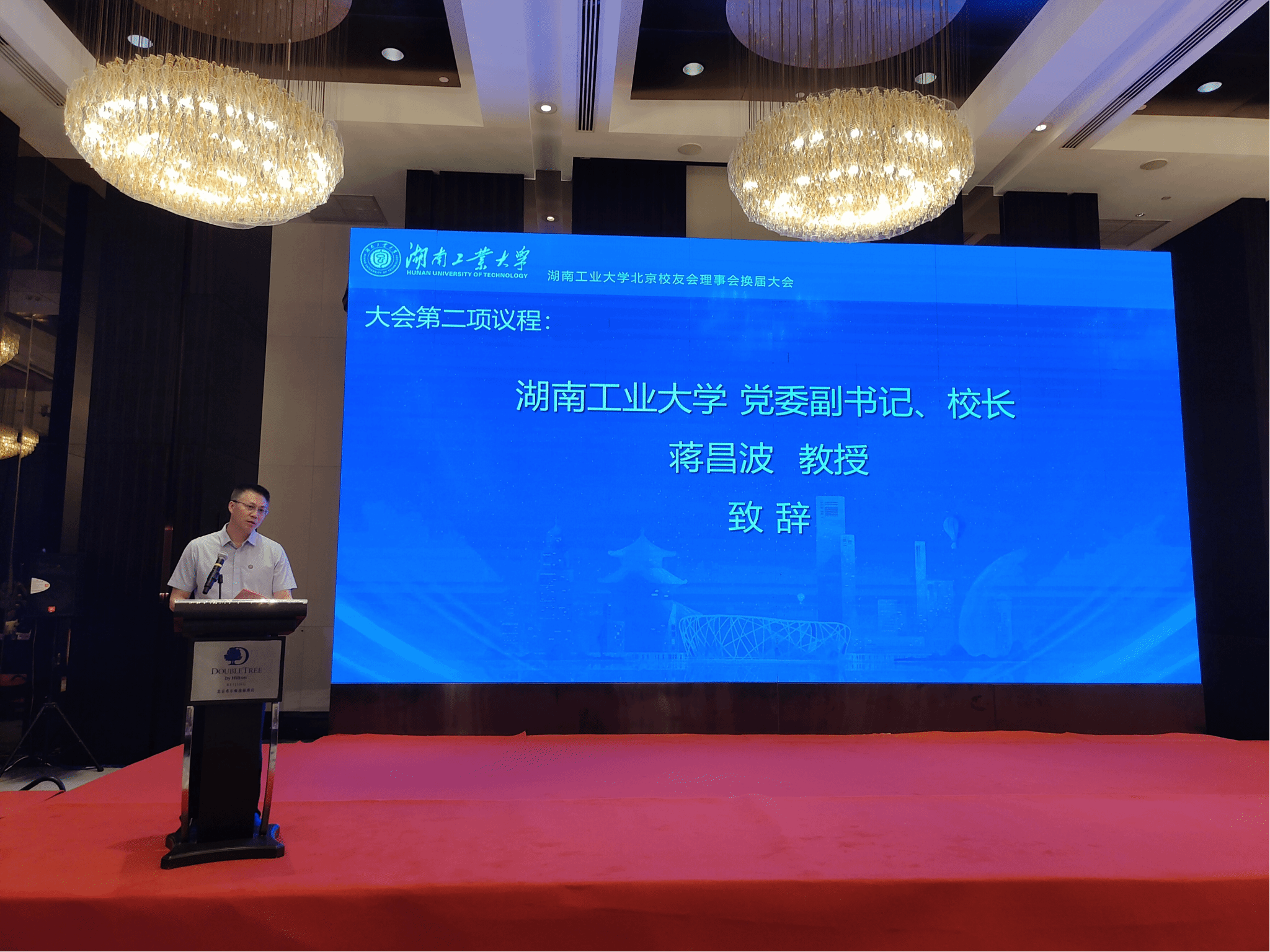 7月16日,我校北京校友会理事会换届大会暨校友联谊会在北京召开。校长蒋昌波出席大会并致辞。会议选举产生了北京校友会第三届理事会成员,表决通过了《湖南工业大学北京校友会章程》(修订案)、《湖南工业大学北京校友会财务管理制度》(修订案)。副校长龙永红,株洲市人民政府驻北京联络处党组书记陈三龙,校友联络与服务中心、研究生院、期刊社等相关负责人到会指导,北京校友代表130余人参会。