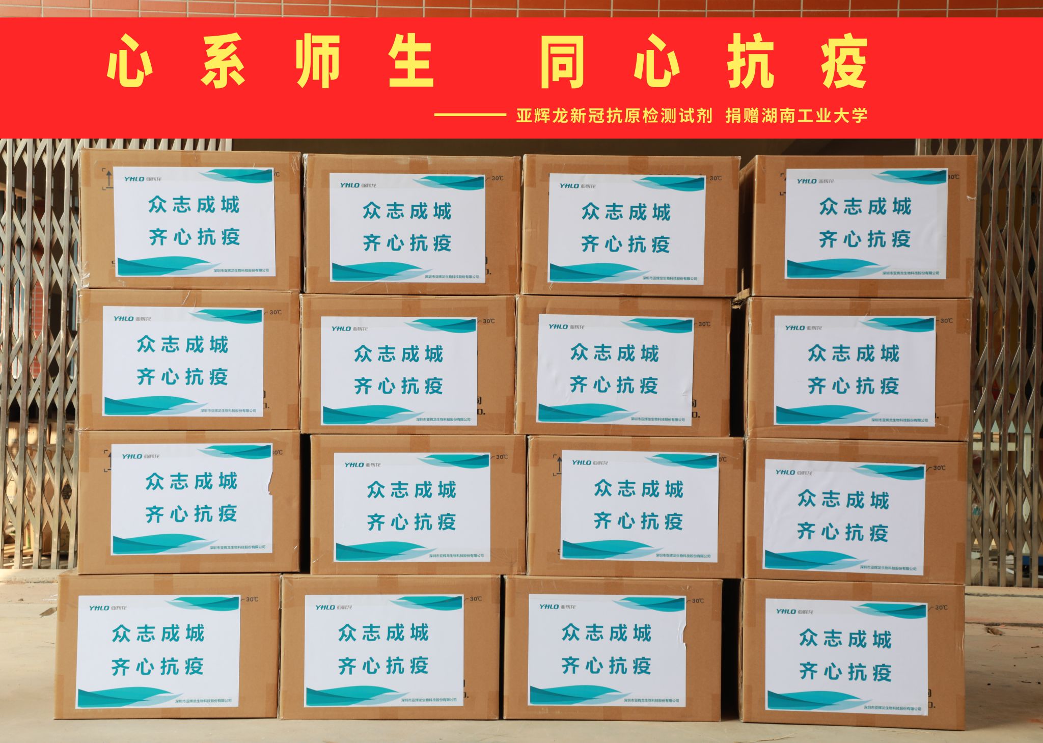疫魔无情,校友有爱。深圳亚辉龙作为国内知名防疫抗疫保障企业,作为具有高度爱国爱民情怀上市公司,长期以来努力推进与母校的产教深度融合。作为该公司创始人,同时作为学校校友会第三届理事会副会长,胡德明校友心系母校,始终关心关注母校。在得知母校所在的株洲市实行“静默管理”消息后,第一时间便在“理事会微信群”里问询学校有什么需求,校友总会负责人迅速报告请示学校党委书记刘望,刘望对于胡德明校友时刻关心关注母校防疫动态的深厚情怀表示衷心感谢。胡德明当即表示先向学校捐赠5万人份新型冠状病毒(2019-nCoV)抗原检测试剂盒,并加急安排发往母校。