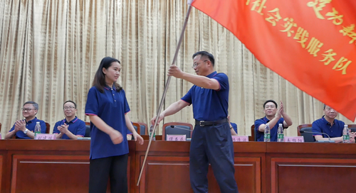 校领导为实践服务队和“三下乡”实践服务团授旗