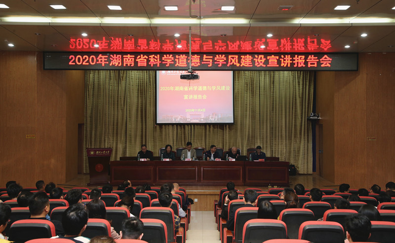 11月4日,“2020年湖南省科学道德与学风建设宣讲报告会”在崇德楼一楼报告厅举行。省科协党组成员、副主席傅爱军,湖南师范大学党委委员、副校长匡乐满教授以及省科协调研宣传部部长李云,市科协党组书记张文等领导莅临此次会议。会议由校长刘扬主持。