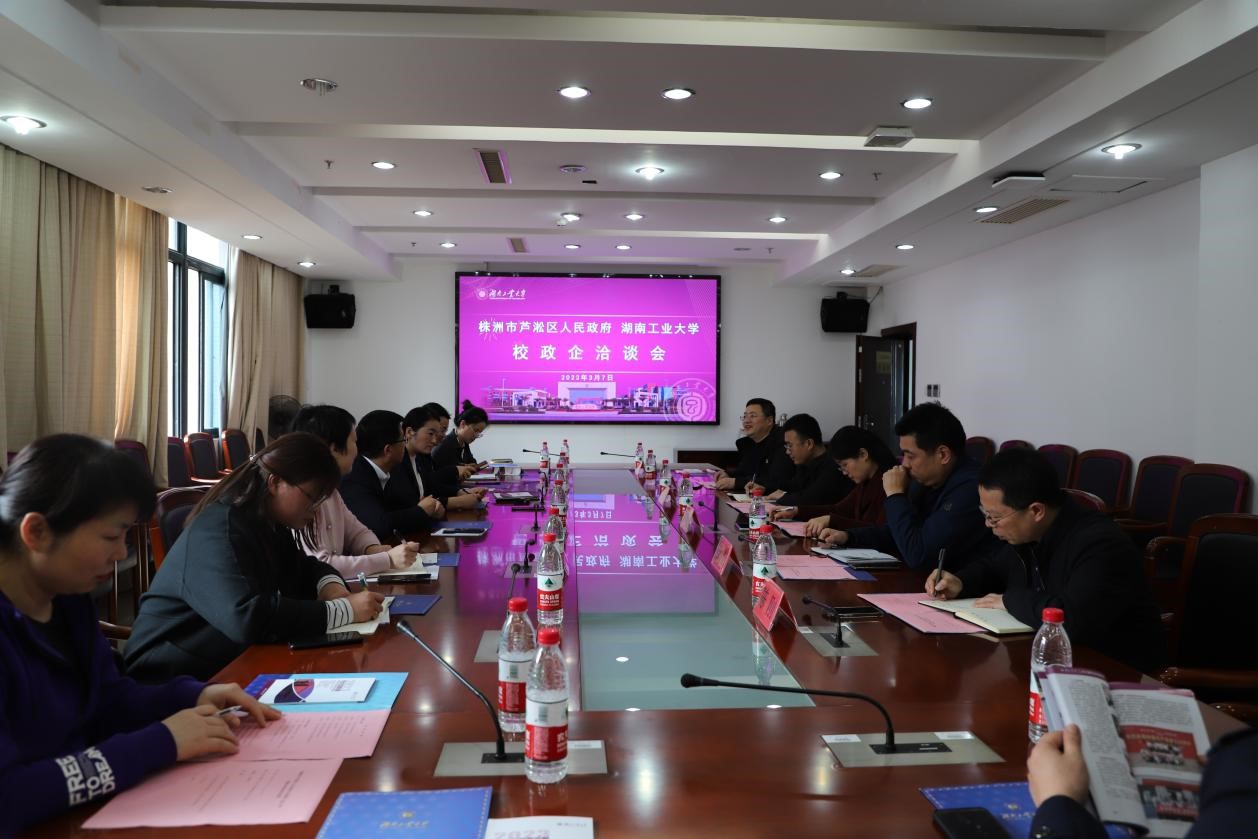 张勇对我校办学特色和育人成果充分认可和肯定,并就芦淞区发展情况、人才引进政策、企业发展情况作简要介绍。他指出,芦淞区作为株洲的发祥地,也是株洲工业的发端地,将聚焦航空、服饰、新材料三大产业,并进一步完善提升航空城、服饰城的规划布局。他表示,当前芦淞区对人才需求旺盛,政府积极落实人才激励政策。希望通过搭建人才培养实训基地,科研基地,就业基地等平台,与我校深入合作,充分发挥我校科研和人才优势,推动人才、科技、创新与产业深度对接、全面融合。