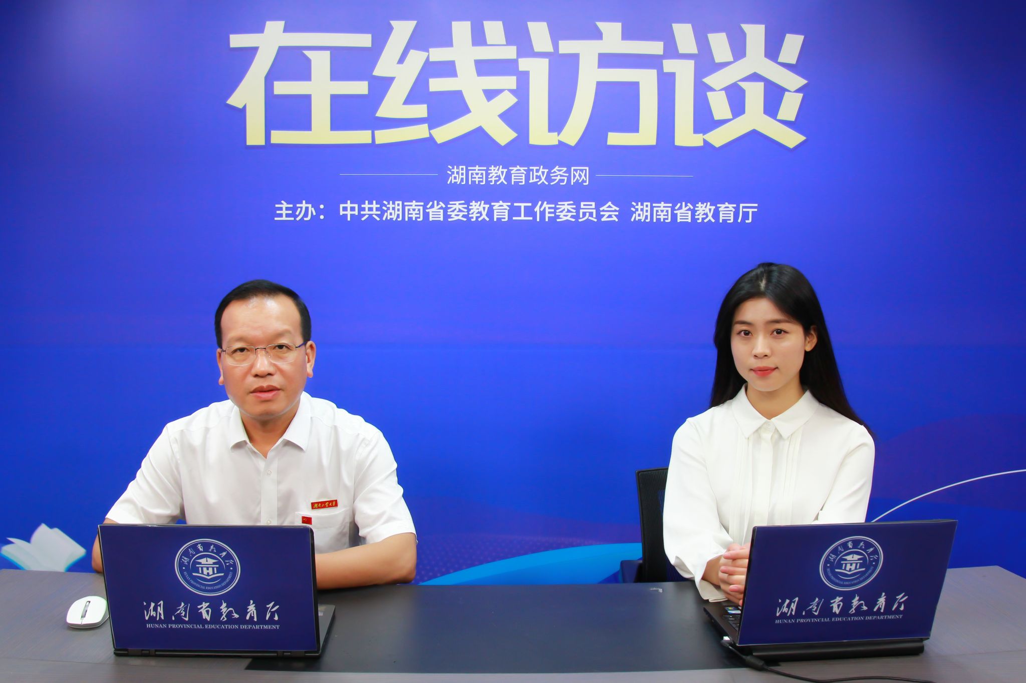 6月29日,副校长佘朝文应邀接受湖南教育政务网在线访谈,就高校深入落实教育、科技、人才“三位一体”统筹部署(以下简称“三位一体”)这一主题,与广大网友在线交流。