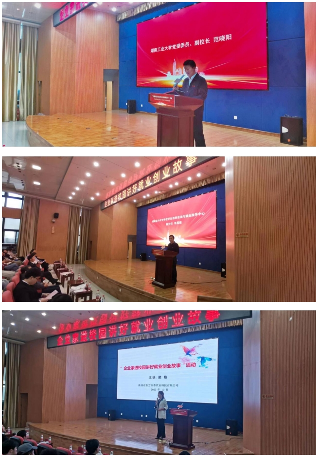 10月16日上午,“企业家进校园讲好就业创业故事”第三次活动在我校崇德楼一楼报告厅举行,本次活动由湖南省教育厅、湖南省工商联合会和我校共同主办。副校长范晓阳出席,湖南省大中专学校学生信息咨询与就业指导中心副主任李昌维,湖南财信产业基金管理有限公司,株洲市东方四季农业科技有限公司,校招生与就业指导处、创新创业学院相关负责人及全省各高校学生代表参会,会议通过线上线下结合的方式召开。