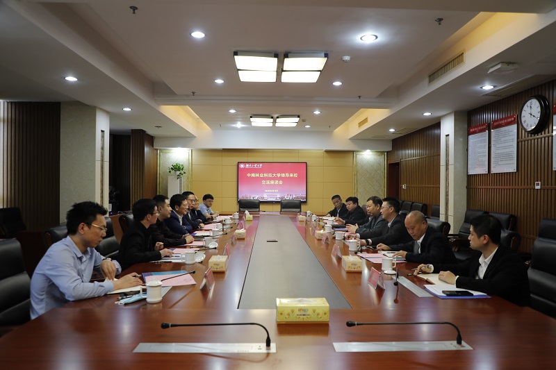 5月19日下午,中南林业科技大学校长廖小平、副校长王忠伟一行7人来校调研,了解我校人才和科研工作情况。校领导刘望、蒋昌波、蒋建初及相关职能部门负责人出席调研会。会议由校长蒋昌波主持。