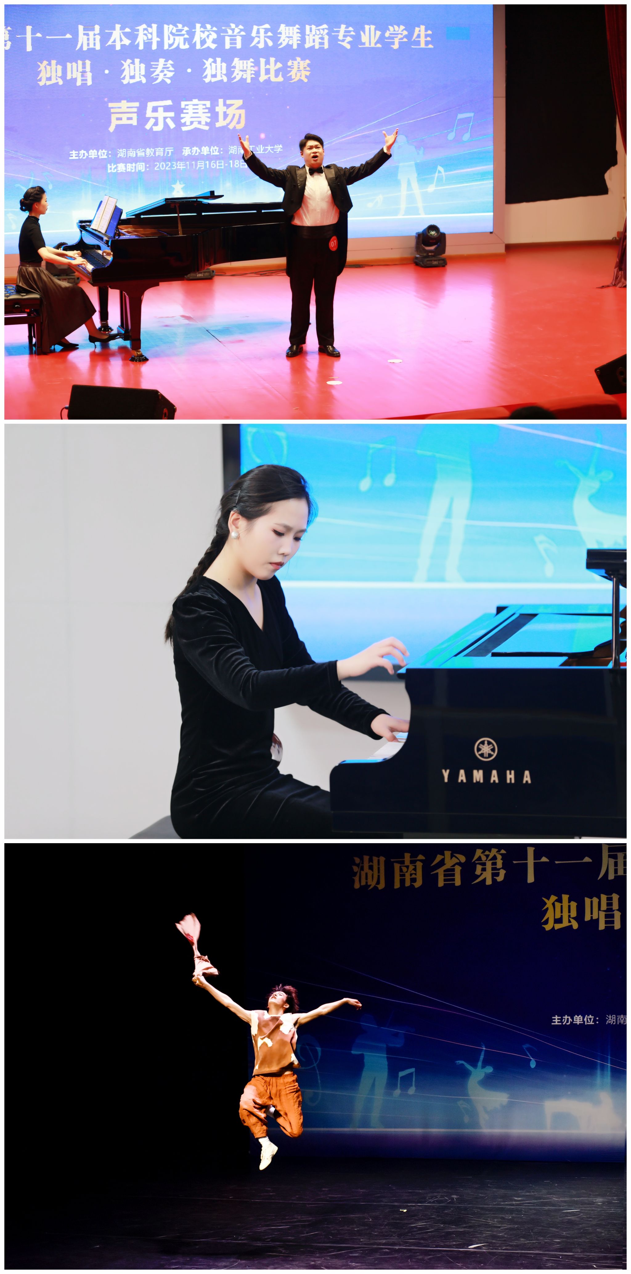 11月16日至18日,湖南省第十一届本科院校音乐舞蹈专业学生独唱、独奏、独舞比赛在我校举行。来自中南大学、湖南师范大学、湖南农业大学等25所院校的234名音乐、舞蹈专业学生汇聚我校,亮才艺、展风采。