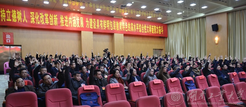 大会表决通过了两委工作报告的决议。大会认为,唐未兵同志代表中共湖南工业大学第一届委员会所作的工作报告以马克思列宁主义、毛泽东思想、邓小平理论、“三个代表”重要思想和科学发展观为指导,高举中国特色社会主义伟大旗帜,全面贯彻党的十八大和十八届三中、四中和五中全会精神,深入贯彻习近平总书记系列重要讲话精神,认真总结过去,客观分析形势,科学规划未来,是指导我校今后五年工作的重要文件。大会强调,要实现今后几年的奋斗目标,我们必须坚定不移推进学校转型发展、内涵发展、特色发展、创新发展和和谐发展,正确处理改革、发展、稳定的关系,促进学校各项事业全面持续协调发展。
