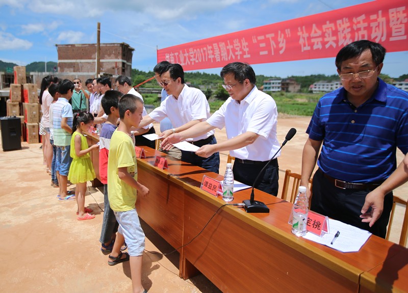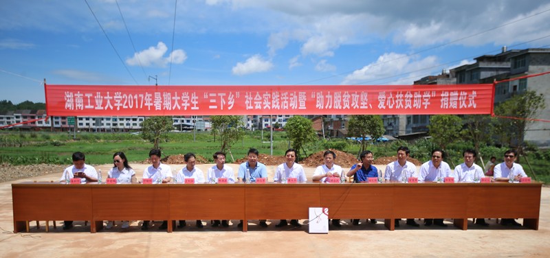 座谈会后,校领导一行看望慰问了我校在浣溪村进行大学生“三下乡”社会实践活动的包装设计艺术学院师生,参加了“助力脱贫攻坚 爱心扶贫助学”捐赠仪式。捐赠仪式由茶陵县政府副县长杨定桃主持。