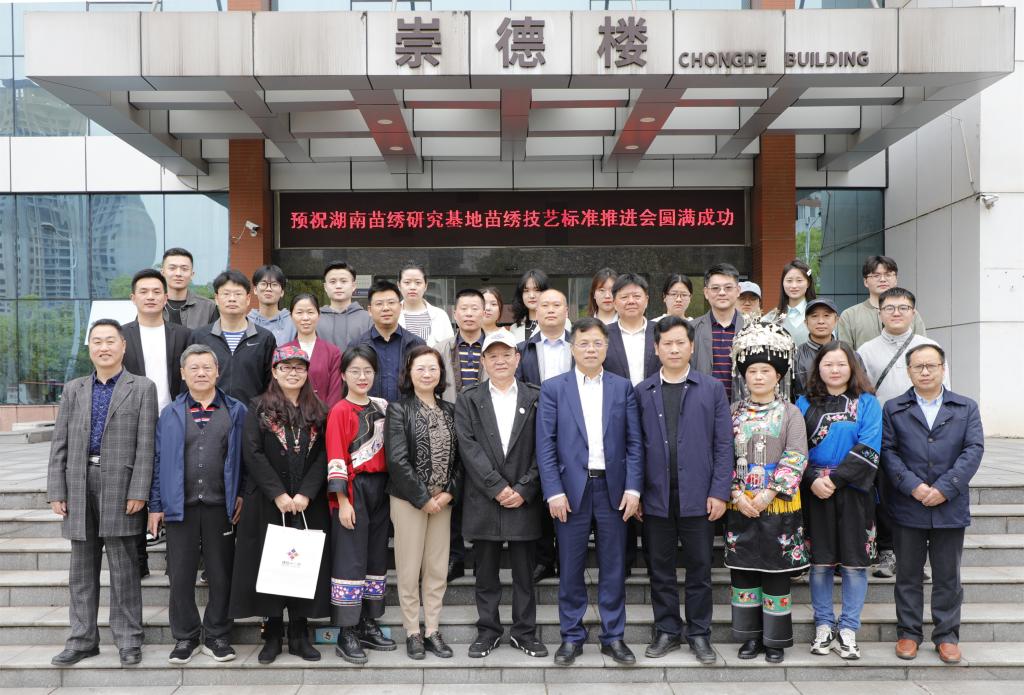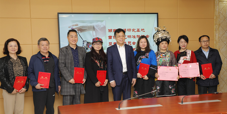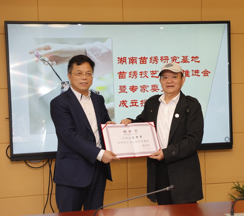 4月23日,湖南省地方标准《苗族刺绣》制定推进会与文本研讨会在湖南工业大学召开。湖南省市场监督管理局标准处二级调研员刘红、湖南省文化和旅游厅非遗处二级调研员肖正湖出席会议,我校党委书记、湖南省苗绣研究基地负责人谭益民教授为苗绣技术标准专家委员会成员颁发聘书并讲话,副校长李若梅主持大会,副校长殷晓元致辞,标准专家委员会成员、校内相关部门代表参加了会议。