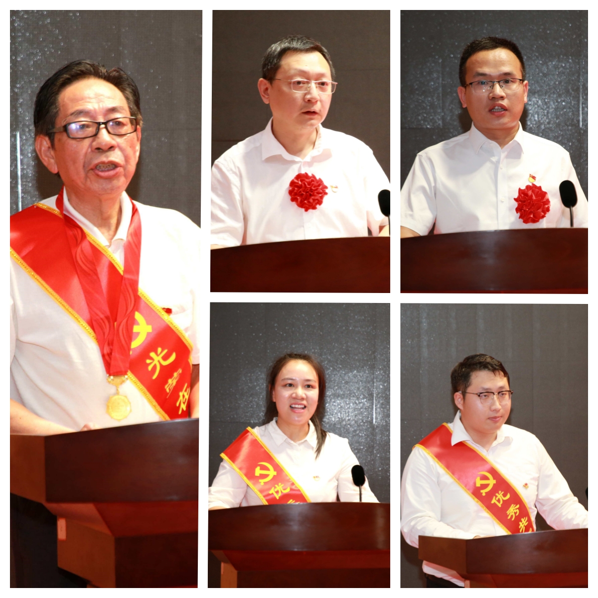 “光荣在党50年”纪念章获得者代表聂毅,“先进基层党组织”代表李志刚,“先进党支部”代表向汉庆,“优秀教工党员”代表曹蓓,“优秀学生党员”代表乔宇先后发言,结合自身实际作了切实生动的事例分享、经验感悟、心得体会。