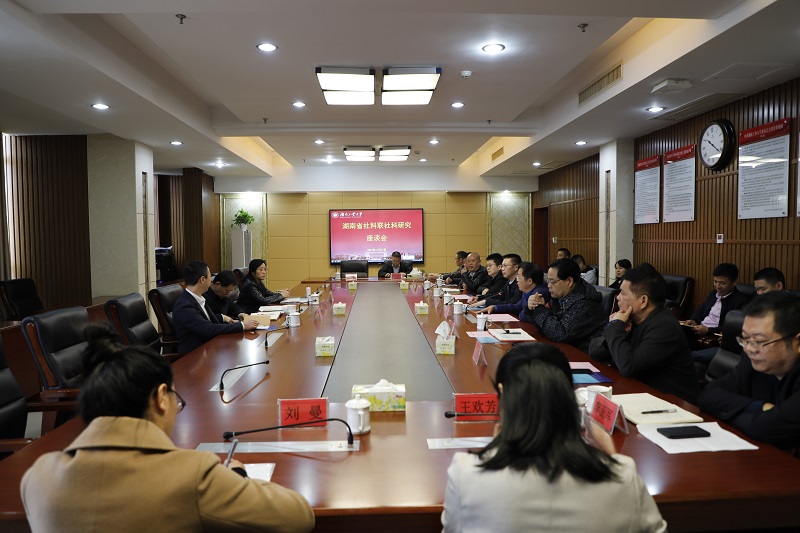 党委书记谭益民对宋智富一行在全国上下深入学习贯彻党的十九届六中全会精神、湖南省第十二次党代会即将召开前夕莅临我校调研指导工作表示热烈欢迎,对省社科联给予我校社科工作的大力支持表示感谢。他简要介绍了我校的办学历史、办学规模、学科特色及人文社科特色研究等情况。社会科学处负责人从我校人文社会科学教学学院和专业设置、哲学社会科学研究人员基本情况、学校十三五期间取得的成绩等三个方面汇报了目前我校哲学社会科学的发展情况。