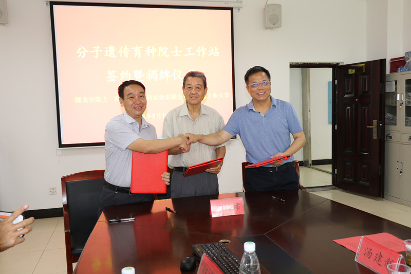 5月16日,中国工程院颜龙安院士科研团队与湖南工业大学共建分子遗传育种院士工作站签约暨揭牌仪式在我校生命科学与化学学院举行。中国工程院院士颜龙安、海南广陵高科实业有限公司董事长戴扬、校长谭益民等参加仪式,仪式由副校长罗定提主持。