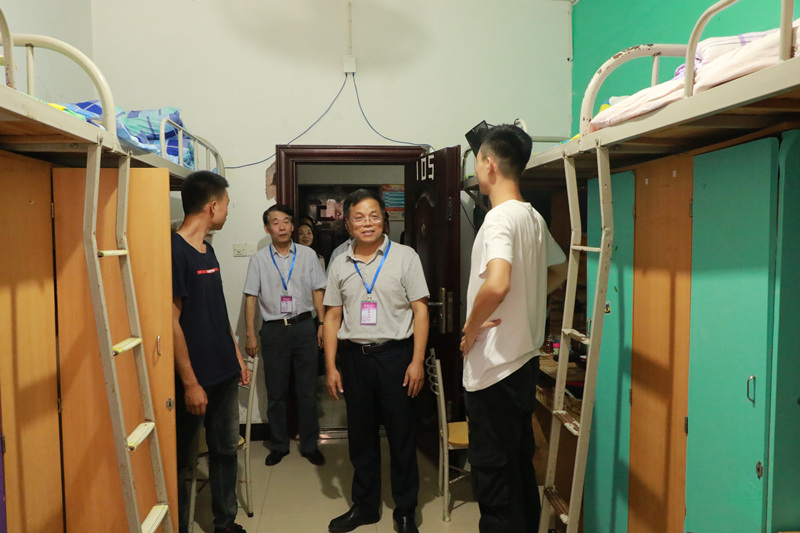 校领导一行走进宿舍,与新生与家长话起家常,关切询问新生是否适应新环境、住宿是否习惯,并表示新生来自不同地方,大家要相互理解、相互帮助,早日熟悉校园环境,尽快融入大学生活。
