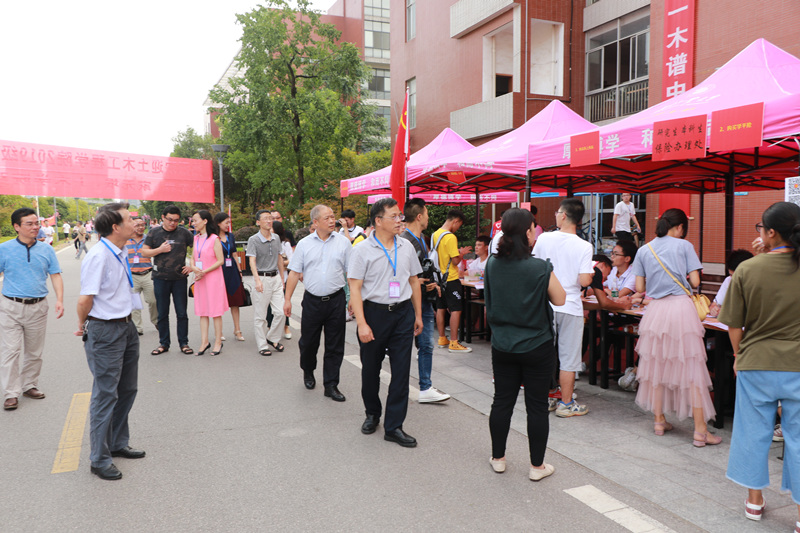 9月6日下午,党委书记、校长谭益民,党委副书记韩清波,副校长罗定提、李若梅来到各二级学院迎新接待站、新生宿舍等地,慰问迎新工作人员,看望2019级新生与家长。