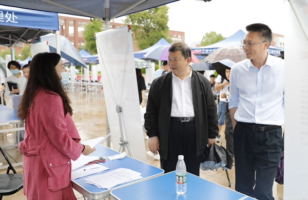 党委书记刘望、校长蒋昌波、副校长李若梅莅临双选会现场,与招聘单位工作人员接洽沟通,听取了用人单位对我校毕业生的就业反馈和学校人才培养等建议,亲切询问了现场毕业生的求职意愿和就业进展情况,鼓励毕业生树立正确的就业观念,结合国家需要、就业意愿等方面积极就业。