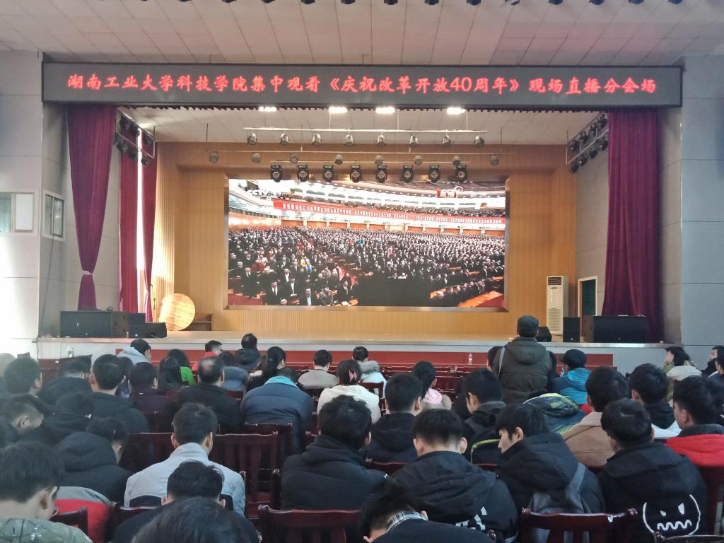 我校精心策划、用心筹备,开设了22个分会场,组织近万名师生通过电视、广播、网络等形式收看大会直播,共同感受改革开放40年来,国家在经济、文化、教育等方面取得的辉煌成就。
