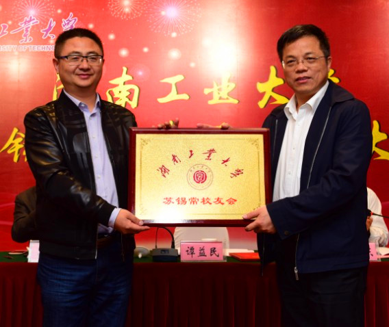 校友总会会长、校长谭益民向苏锡常校友会首任会长郭荣授牌