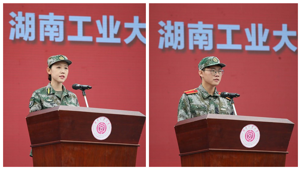 军训教官吴爽、参训新生郑晓炜分别代表承训教官和参训学员发言