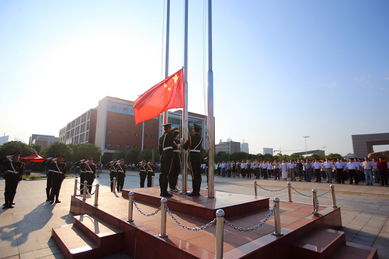 在祖国68周年华诞之际,10月1日上午8点,我校庆国庆升国旗仪式在河西校区顺利举行,校领导张昌凡、范晓阳、李可兴、朱和平出席仪式,党政办、组织部、宣传部、学生处、团委、机关党委、工会以及各二级学院党政负责人及300多名师生参加了本次升旗仪式。