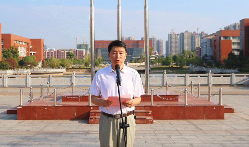 仪式上,副校长张昌凡作了讲话,他说,在中华人民共和国成立68周年和党的十九大即将召开之际,我们怀着喜悦的心情在这里举行升旗仪式,共同庆祝我们伟大祖国成立68周年。68年风雨兼程,68年硕果累累,68年的步伐才有了今天富饶强大的中国!我们湖南工业大学在共和国光辉的照耀下,经历了58年,培育出一代又一代的优秀人才。我们必当紧跟时代的步伐,响应党中央的号召,认真学习习近平总书记系列重要讲话精神和治国理政新理念、新思想、新战略,牢固树立“四个意识”,增强“四个自信”,大力倡导全校师生积极培育和践行社会主义核心价值观,要以实际行动和扎实有效的成绩迎接十九大的到来,努力为把学校建设成为在国内同类院校中具有较大影响力和鲜明包装教育特色的高水平综合性大学而努力奋斗。