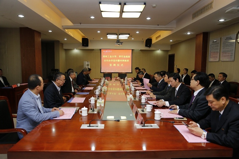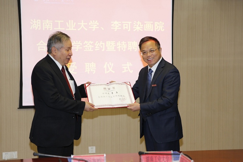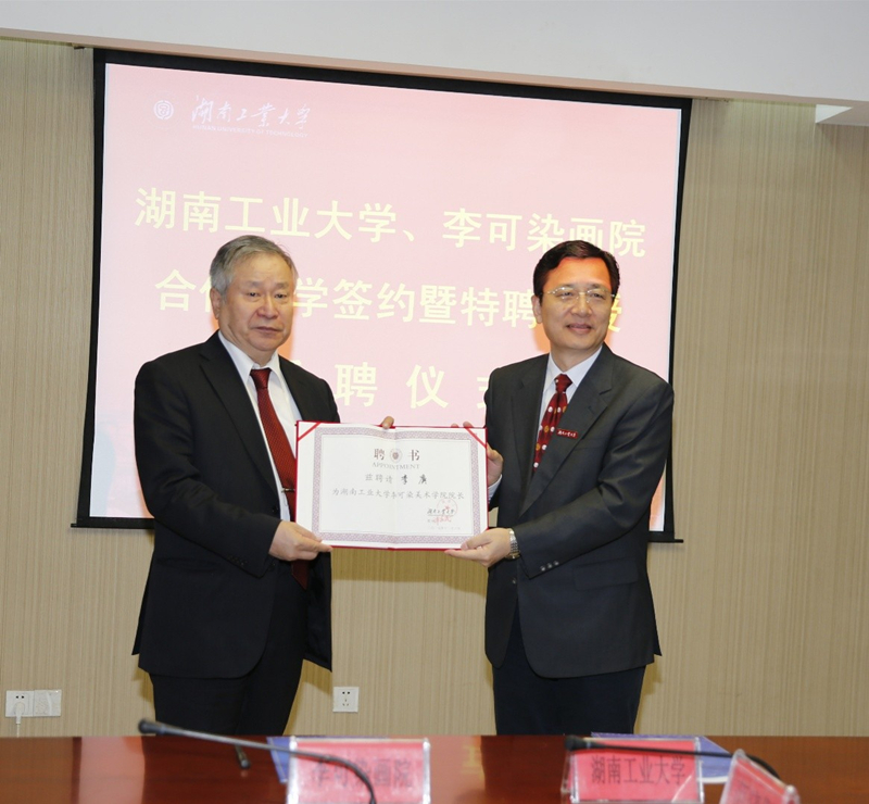 11月5日,我校与李可染画院举行合作办学签约仪式,双方共建湖南工业大学李可染美术学院,并隆重揭牌,同时举办李庚个人画展。