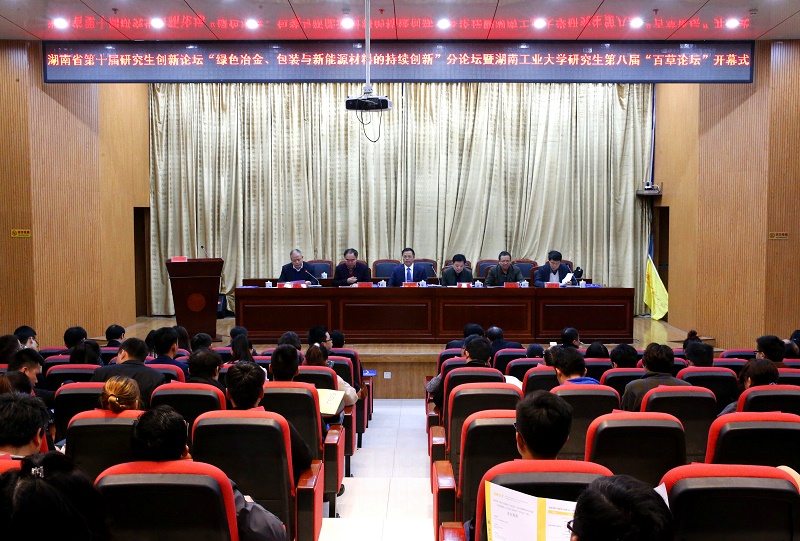 11月16日上午,湖南省第十届研究生创新论坛“绿色冶金、包装与新能源材料的持续创新”分论坛暨湖南工业大学第八届研究生“百草论坛”开幕式在我校举行。湖南省学位办主任唐利斌,长江学者、中南大学博士生导师贺跃辉教授,湘潭大学研究生院院长、博士生导师王先友教授,我校校领导谭益民、张昌凡、罗定提出席,来自省内14所兄弟高校28位嘉宾、各学院主管研究生教育的领导、老师和研究生代表共220余人参加了开幕式。开幕式由副校长罗定提主持。