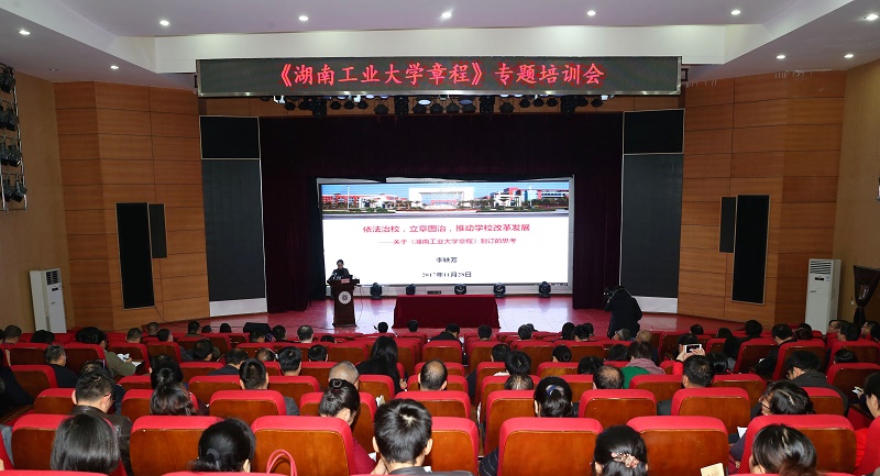 11月28日下午,《湖南工业大学章程》(以下简称“章程”)专题培训会在我校音乐学院报告厅举行。校党委副书记韩清波主持会议,副校长张昌凡、范晓阳出席,全校副处级以上干部,机关与直属单位科室负责人参加了培训。