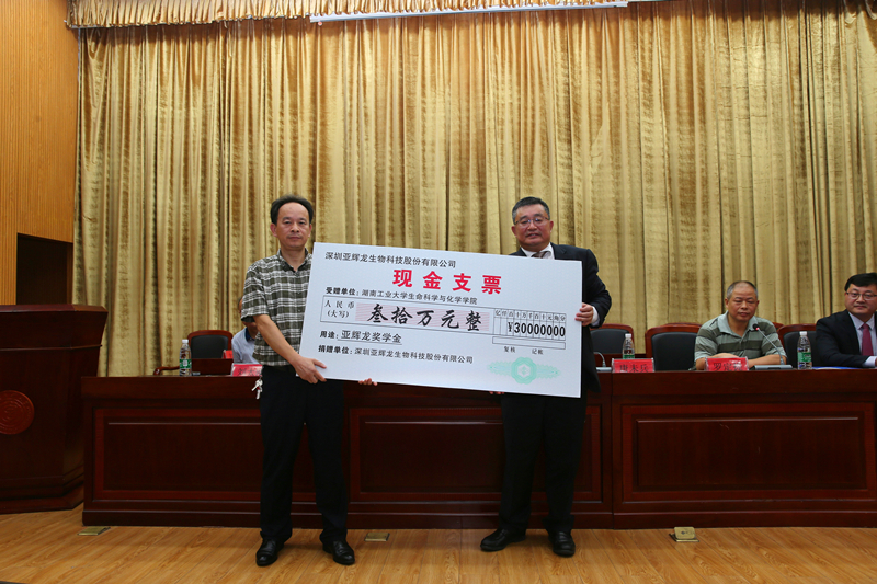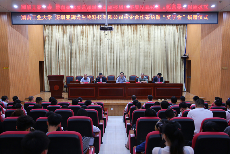 10月9日上午,深圳亚辉龙生物科技股份有限公司与我校校企合作签约暨“亚辉龙”奖学金捐赠仪式在科技楼报告厅举行,校党委书记唐未兵,我校校友、深圳亚辉龙生物科技股份有限公司董事长胡德明,副校长罗定提,老领导刘太刚,亚辉龙公司总经理宋永波出席,生命科学与化学学院、相关职能部门负责人及师生代表二百余人参加了仪式。