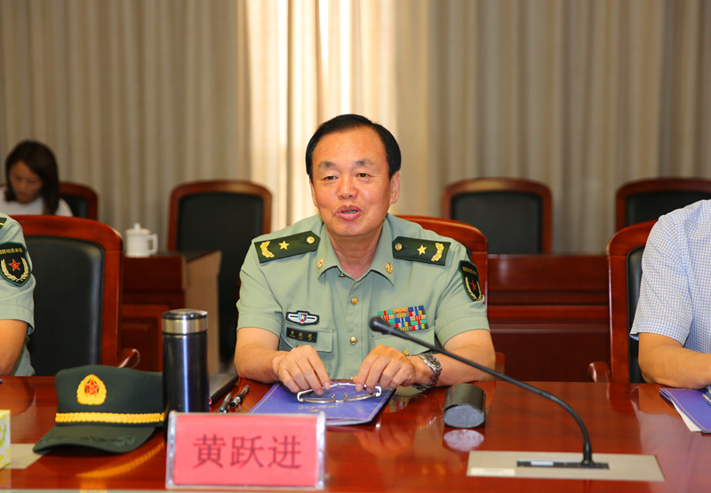 校长谭益民致辞,向黄司令员汇报了我校加强内涵建设,深化改革取得的良好成效。